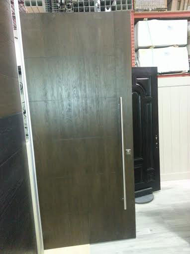 Modern Exterior Front Door-Modern Rustic Woodgrain Front Door with Stainless Steel Bar and Multi Point Locks Installed by Giant Door Manufacturers Inc Modern Exterior Doors