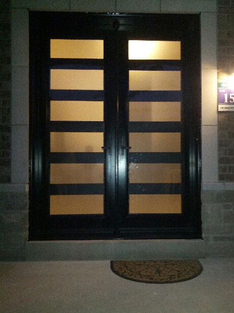 modern Contemporary Front fiberglass Entry Door, frosted-glass-design-front-door-installed-in-Newmarket, Ontario by modern-doors.ca Modern Exterior Doors
