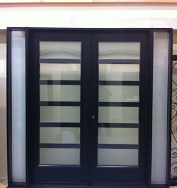 Modern Contemporary Front Entry Fiberglass Doors with 2 Side Lites and Frosted Glass by modern-doors.ca will be installed in Clarington, Ontario Modern Exterior Doors